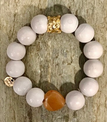 PRECIOSA pulsera de bolitas de madera blanca. En la parte central destaca una piedra de Jade con forma de corazón, diseño exclusivo de Twenty Violets.