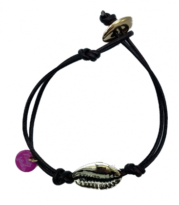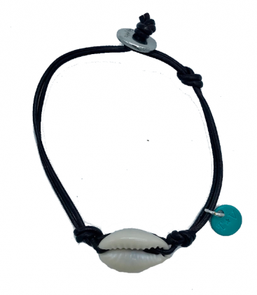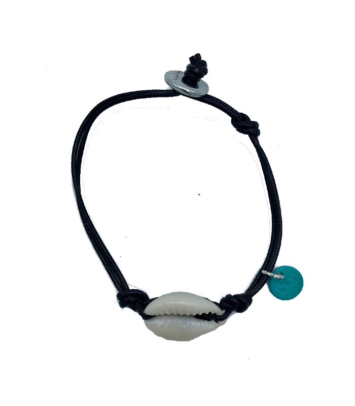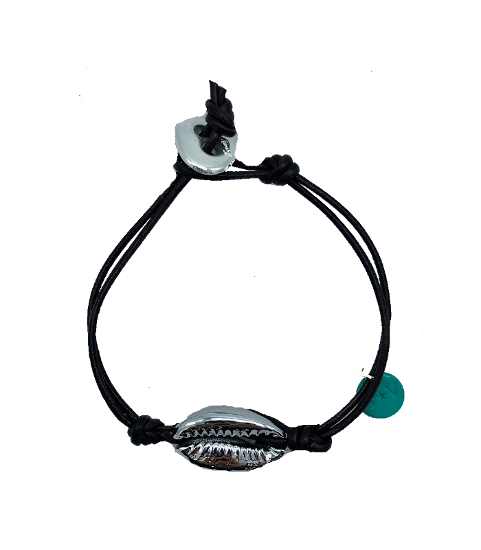 Elegante y original pulsera de cuero 100% natural, con caracola de mar bañada en Oro o Plata.